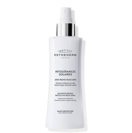 Солнцезащитный спрей SUN INTOLERANCE Protective body spray от Институт Эстедерм это специальное средство, адаптированное для интолерантной кожи ( не переносящей солнце). Благодаря строго определенной комбинации активных компонентов обеспечивает надежную защиту и постепенную адаптацию кожи к солнцу. Подходит для любого уровня инсоляции. Снижает порог чувствительности. Предотвращает фотостарение.