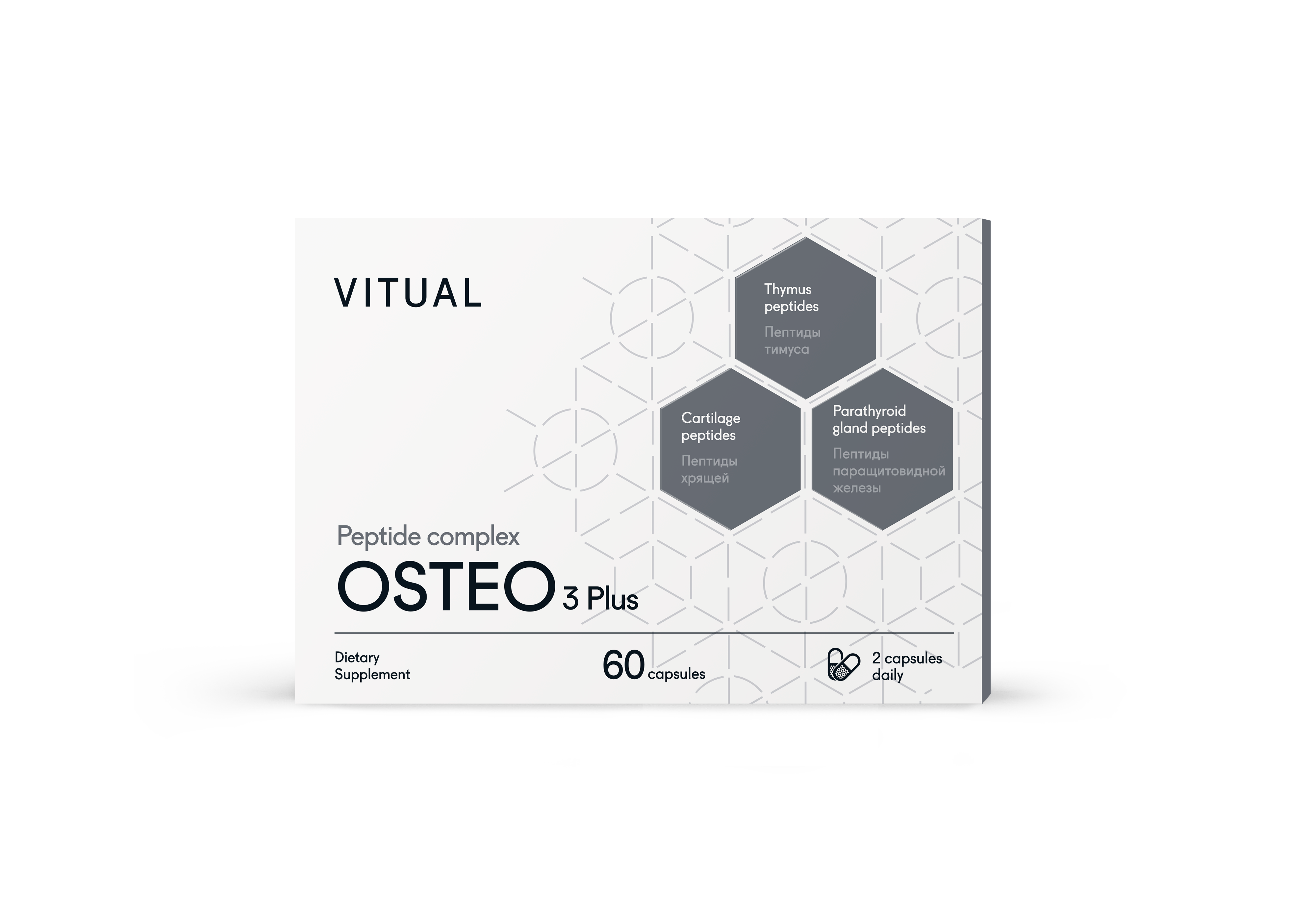 «Остео 3 Плюс» - это комплекс натуральных полипептидов, который разработан для поддержания нормальной функции опорно-двигательного аппарата, улучшения обмена кальция в организме и уменьшения негативного влияния внешних и внутренних факторов на опорно-двигательную систему. Благодаря влиянию на иммунную систему, костную ткань и функции паращитовидных желез, использование биорегуляторов способствует поддержанию физиологического уровня кальция в трубчатых костях.Действие